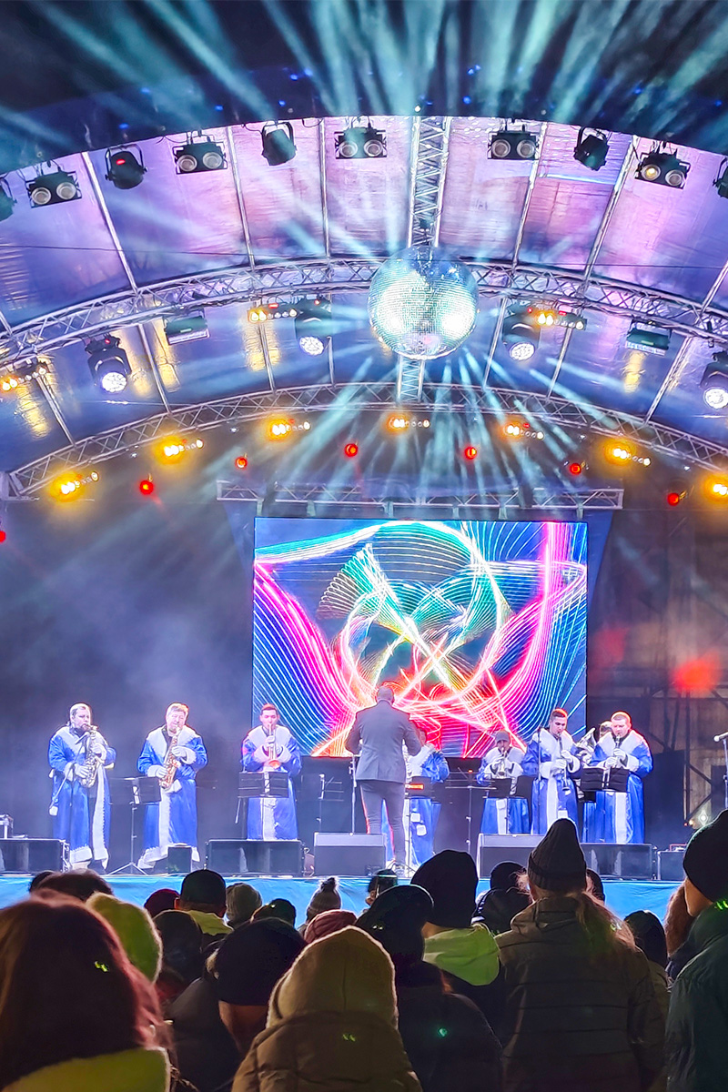 Новорічний концерт на головній сцені міста став справжнім вибухом емоцій і святкового настрою. З перших хвилин простір наповнився атмосферою дива, радості та очікування новорічних чудес. У програмі концерту яскраво поєдналися виступи духового оркестру та талановитих вокалістів, які створили незабутню святкову атмосферу. Музика звучала потужно й водночас тепло, огортаючи кожного глядача. Кожен номер викликав щирі оплески та захоплення публіки. Світло, сцена й музика злилися в єдину новорічну казку. Цей концерт став справжнім святом, яке надовго залишилось в серцях містян та гостей міста.